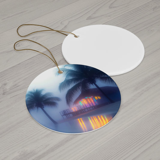 Ornement en céramique - Maison Tiki de la veille de Noël brumeuse de l'île Christmas